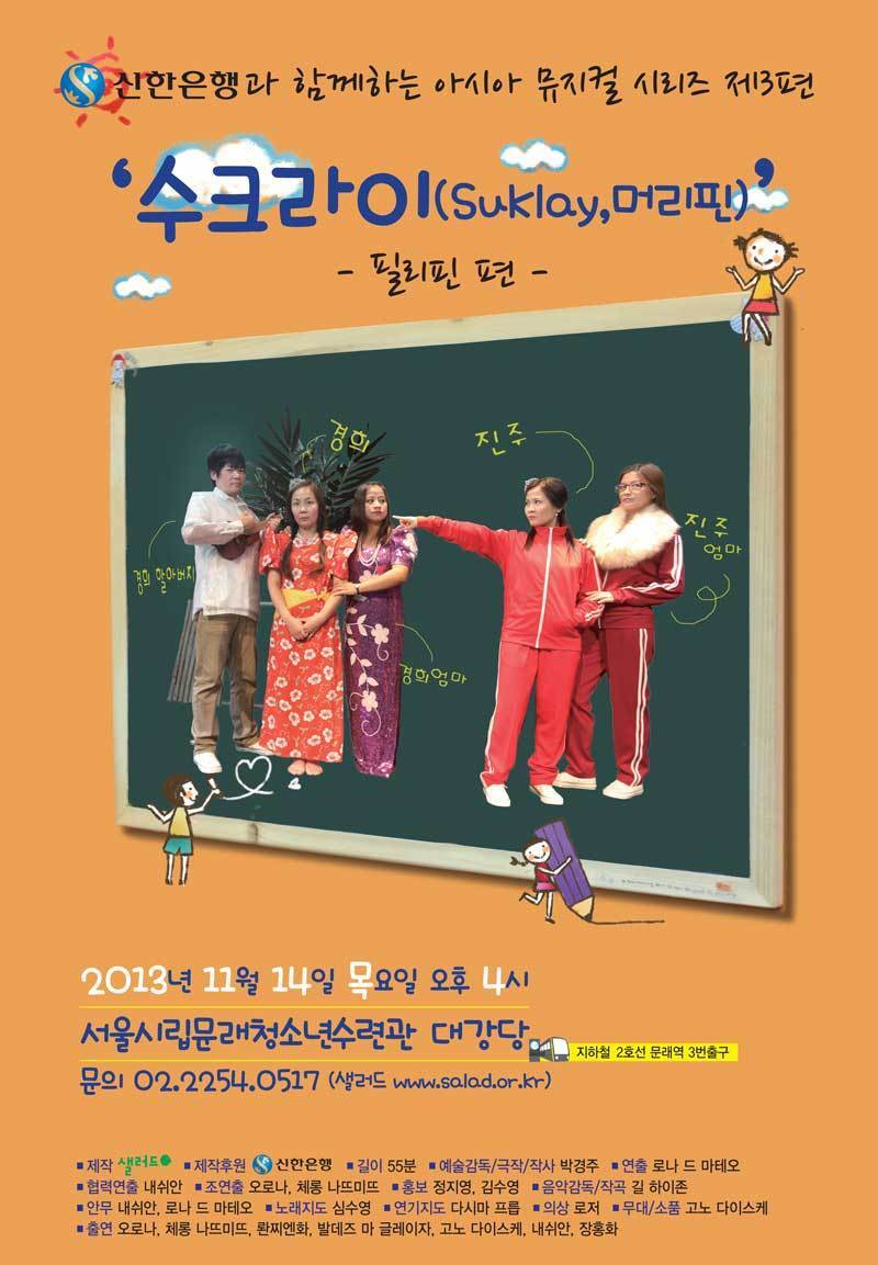 social enterprise salad (founder & ceo: park kyong ju) has produced one multicultural creative musical series (concept: park kyong ju) every year that introduces asian culture since 2011 with production support from the shinhan bank social contribution fund. the asian cultures introduced through the asian musical series so far are nepal, china, the philippines, mongolia, vietnam, and indonesia, india, and myanmar. over the past seven years, these works have visited national and public institutions across the country, met more than 100,000 audiences, and communicated with korean society to respect each other’s culture and understand differences in a multicultural society in an era of 2 million immigrants. salad is made up of various ethnicities and nationalities. for eight years, the playwright park kyong ju and music composer gil hizon accepted each other’s roles and personal backgrounds while negotiating and collaborating to perfect salad’s own way of expressing multiculturalism.