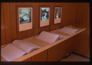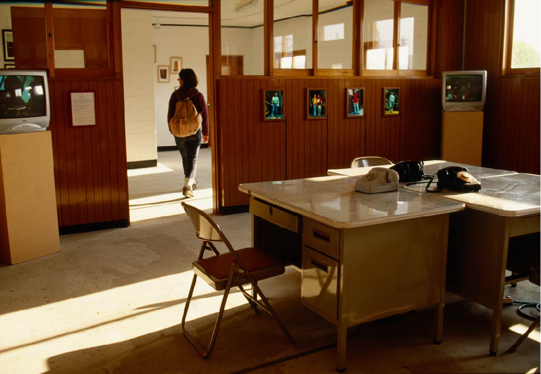 Installation of 13 Light boxes, 2 DVD players, 2 TV monitors, CD player, 3 telephones, 46 Documents(counsel reports), 2002
