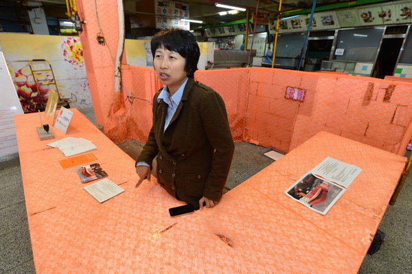 “An artist can step in and decorate an empty store and bring it to life. But one day the artists leave. I hope residents find more vitality. Just like the old Happy Market has colorful lights turned on.” Copyright © Gyeongnam Domin Ilbo, 2014