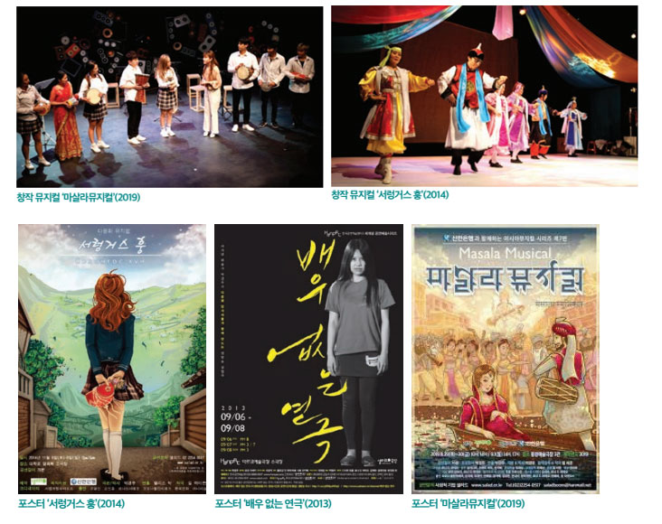 Each work uses a representative folk song as its theme song and essentially introduces a traditional dance to the theme song. The most difficult part of introducing Asian culture over the past eight years is that there are not many Asian cultural materials in Korean. To complement this, Salad researches and organizes cultural materials by involving immigrant artists or experts from that country as coordinators in each creative musical work from the production stage. In cases where it was difficult to obtain local data in Korea, we solved the problem by connecting with local experts through human networks.