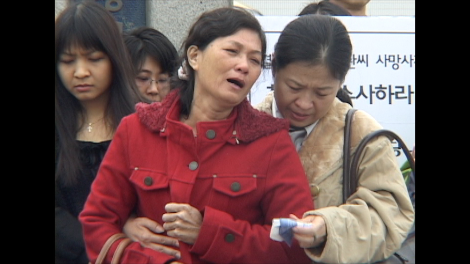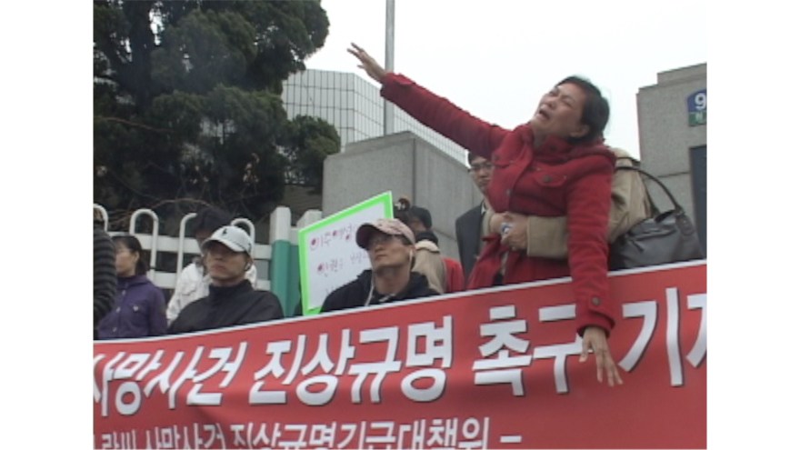 4. ~5. The deceased’s mother is attending a press conference hosted by a civic group and demanding an investigation into the truth.