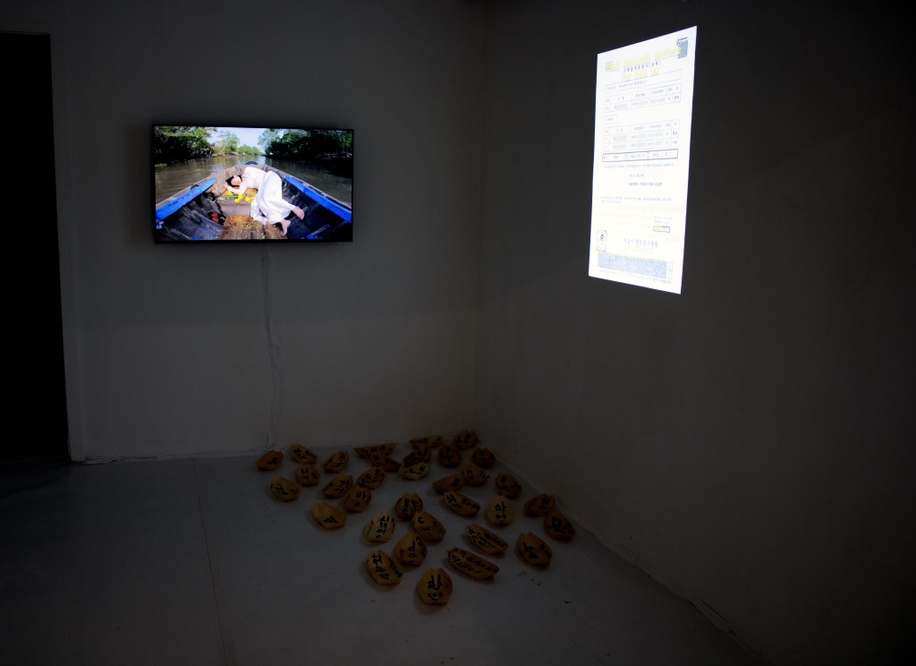 On the 6th February 2008, Tran Thanh Lan, a young Vietnamese woman, was found dead in a small town in South Korea. Jumped to her death from a balcony, according to the police report. ● Artist Park Kyong Ju doesn’t buy this version. For 16 years she has been working on this case and treating it in her artworks. It has been on stage at the theatre, it has been in the Seoul Museum of Art and now it is in Bad Ems. ● Her installation at RichCake not only highlights the case of Tran Thanh Lan, but all such crimes throughout the world. Human rights abuses, modern slavery and exploitation are the topics of the Korean artist Park Kyong Ju, who sees profiteering marriage brokers at the centre of this vortex. During her residency at Bad Ems, Park Kyong Ju has carried on with her mammoth project. ● Coincidentally, she experienced similar insecurity due to immigration laws. Her exhibition at RichCake draws parallels to her own experience with German immigration and her tortuous quest to obtain her residency permit. ● The exhibition is organized in cooperation with the Stadtmuseum Bad Ems, where some of Park Kyong Ju’s works are exhibited as well. ● In cooperation with the Stadtmuseum Bad Ems, where some of Kyong Ju Park’s works are exhibited as well. – Agnes Schofield (Artist Residency Schloss-Balmoral, Curator)