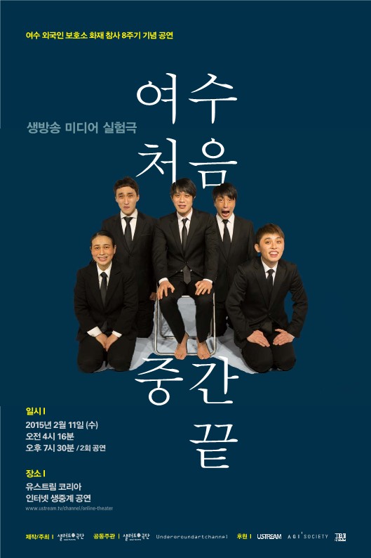사회적 기업 샐러드에서 여수 외국인보호소 화재 화재참사 8주기를 맞아 를 창작공연 ‘여수처음 중간 끝’(극본 & 연출: 박경주)의 재공연을 오는 2월 11일 (수) 생방송 미디어 실험극의 형태로 무대에 올린다.